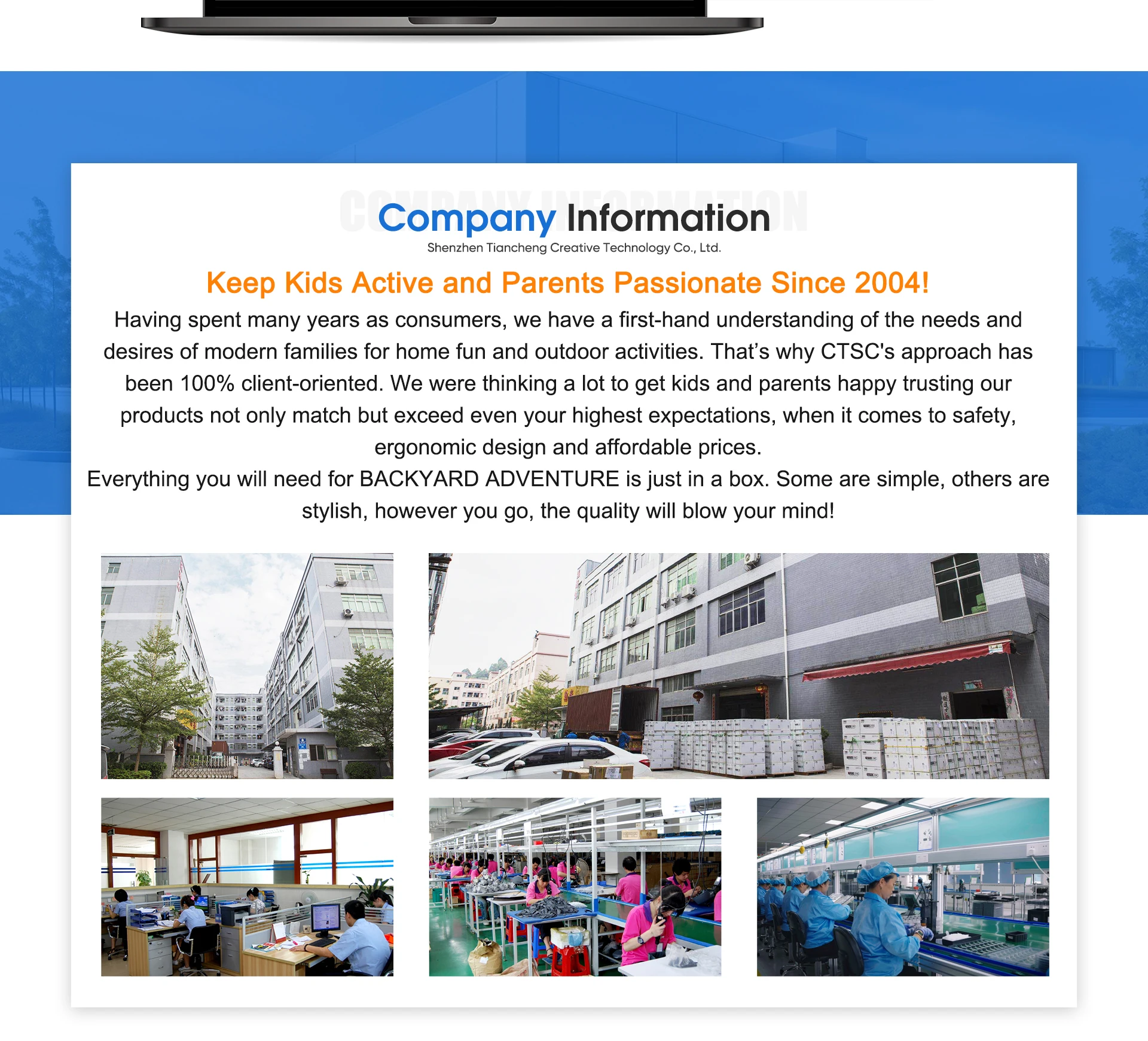 ผลิตภัณฑ์หลัก:การผจญภัยในสวนหลังบ้าน, ความสนุกของครอบครัว, ความปลอดภัยในการเล่นกีฬา, ของเล่นกลางแจ้ง, ชุดทำสวน